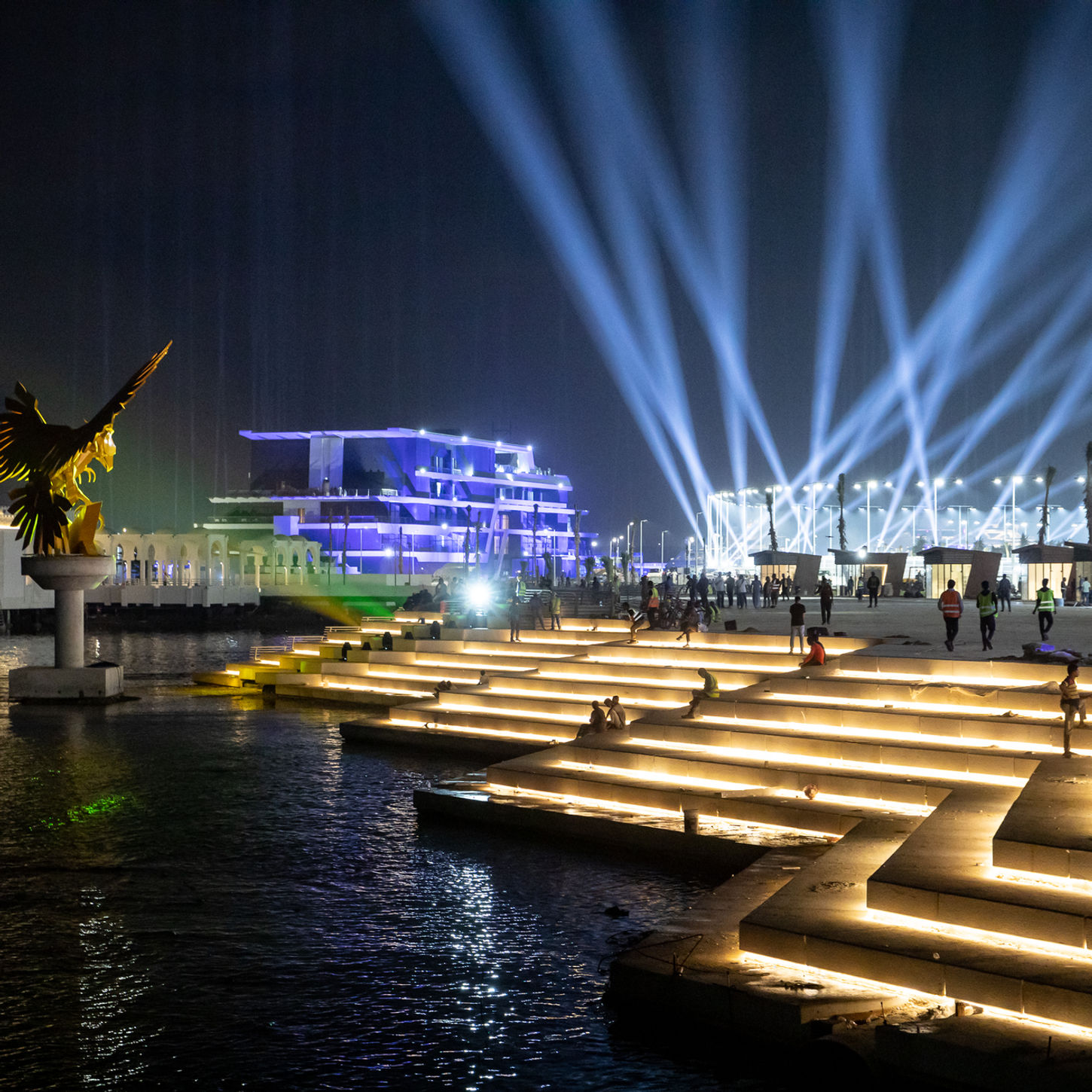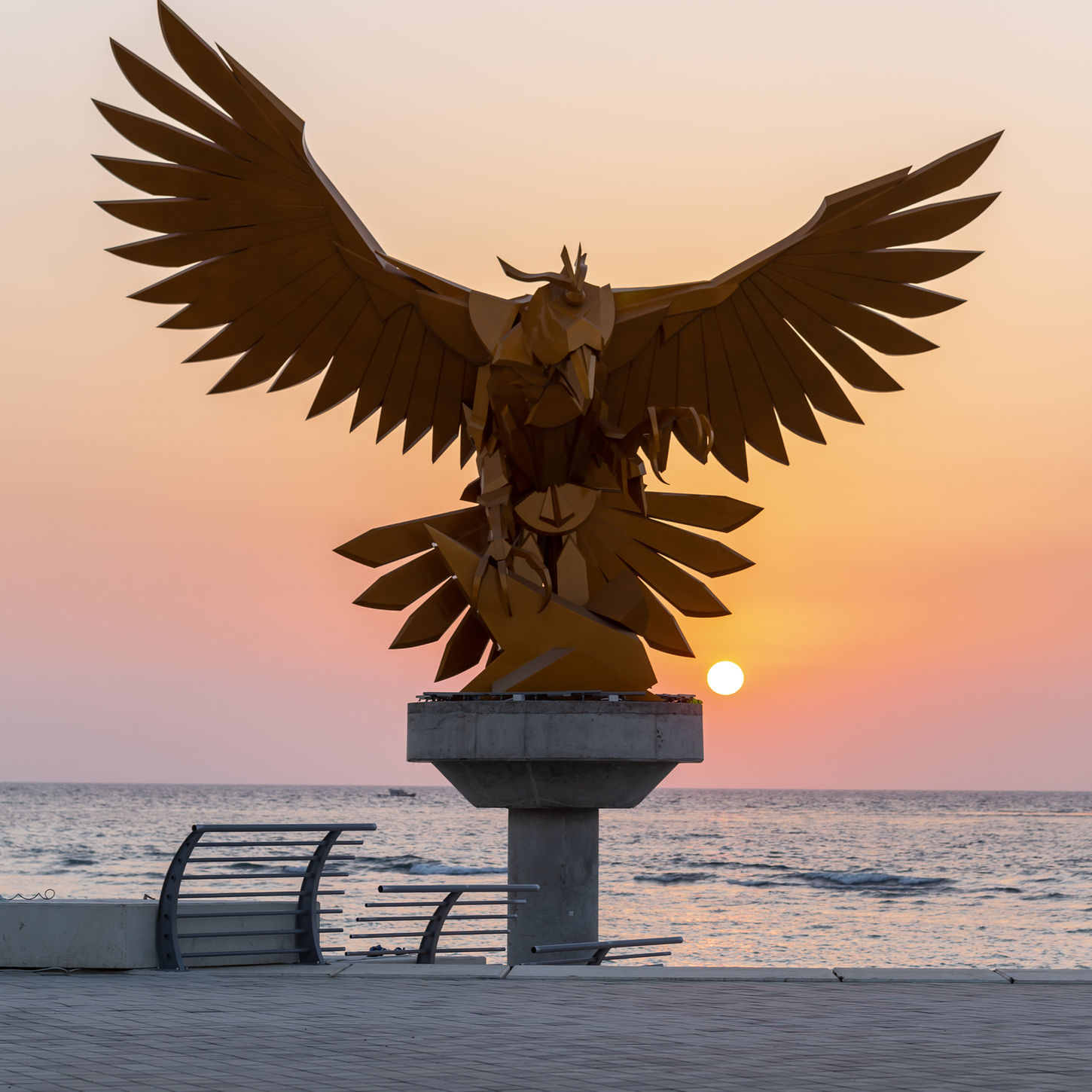 The collection's centrepiece is a striking 40-foot falcon, permanently installed within the water, symbolizing strength and the region’s rich cultural heritage.